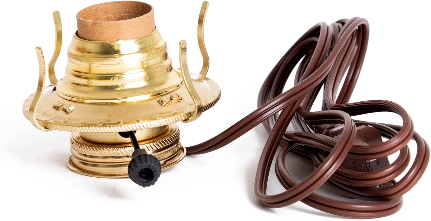 This Goldtone kit provides a seamless way to enjoy the beauty of your oil lamps with the practicality of electric lighting.
